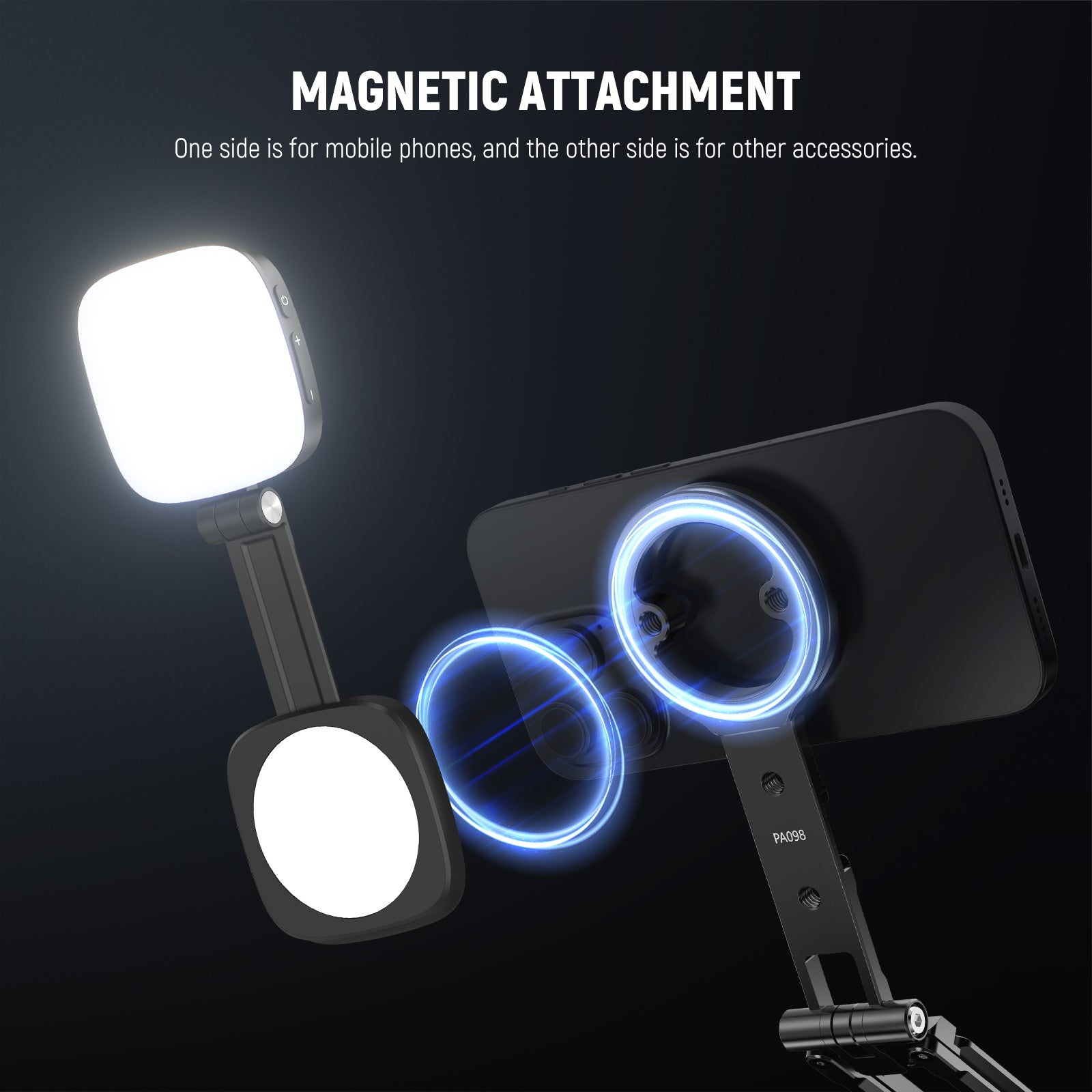 - Magnetic Phone Mount- The magnetic phone holder features a magnetic design, with one side that securely attaches to smartphones (limited to magnetic smartphones only, not compatible with other accessories), and the other for use with the magnetic fill lights and more. The strong magnetic grip ensures the stability of your cell phone during shooting, significantly reducing the risk of accidental drops