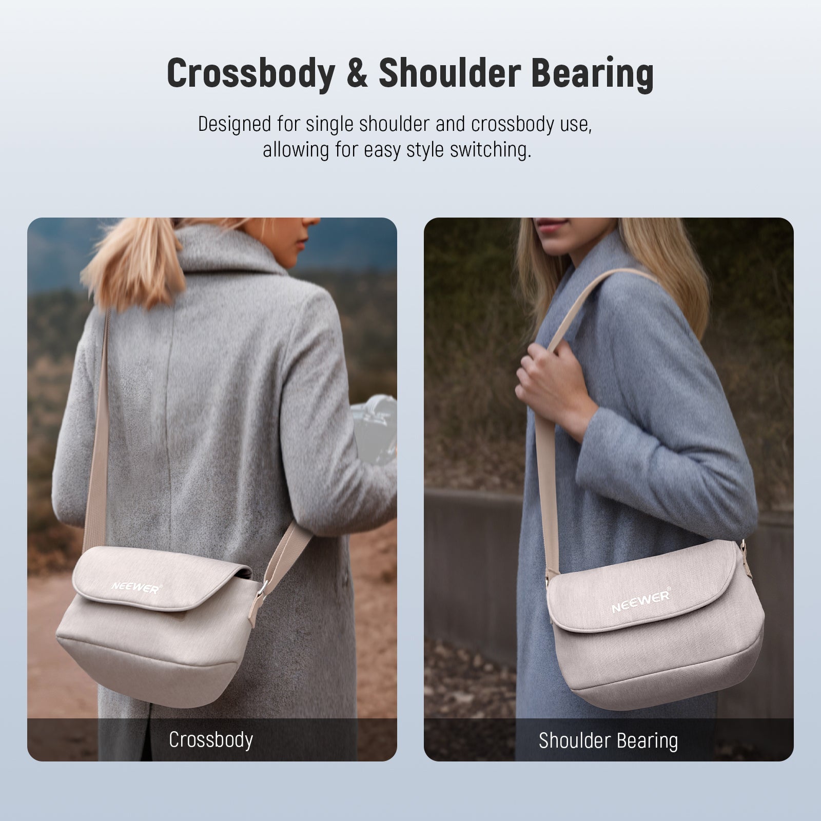 - Shoulder Strap & Shoulder Straps- The mirrorless camera bag comes with a single shoulder or crossbody design, allowing you to switch between styles effortlessly. The adjustable shoulder strap ensures a comfortable fit and tailored to your preferences, while the reinforced straps provide extra security and stability
