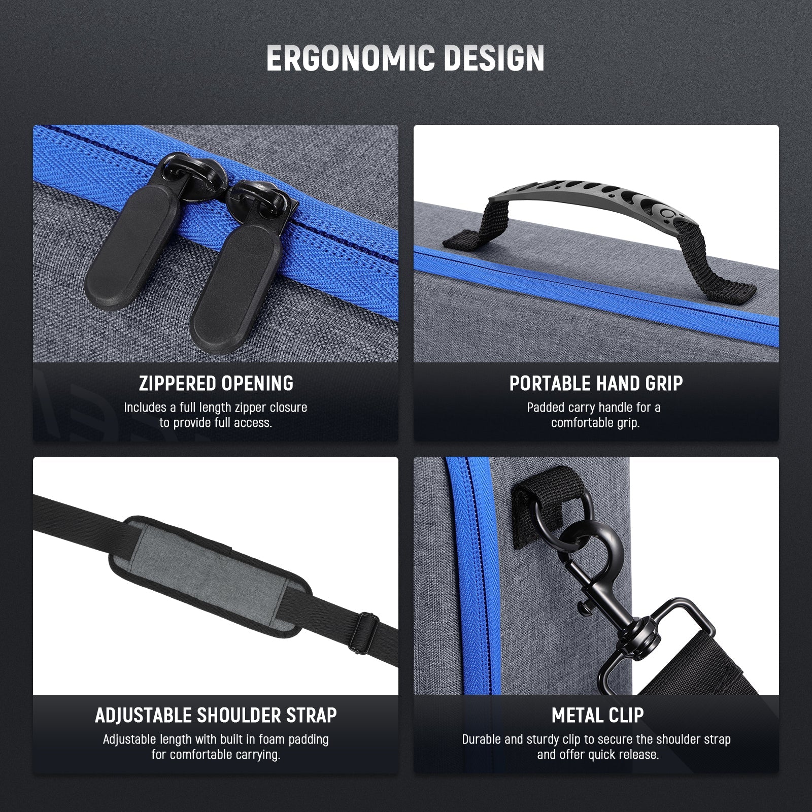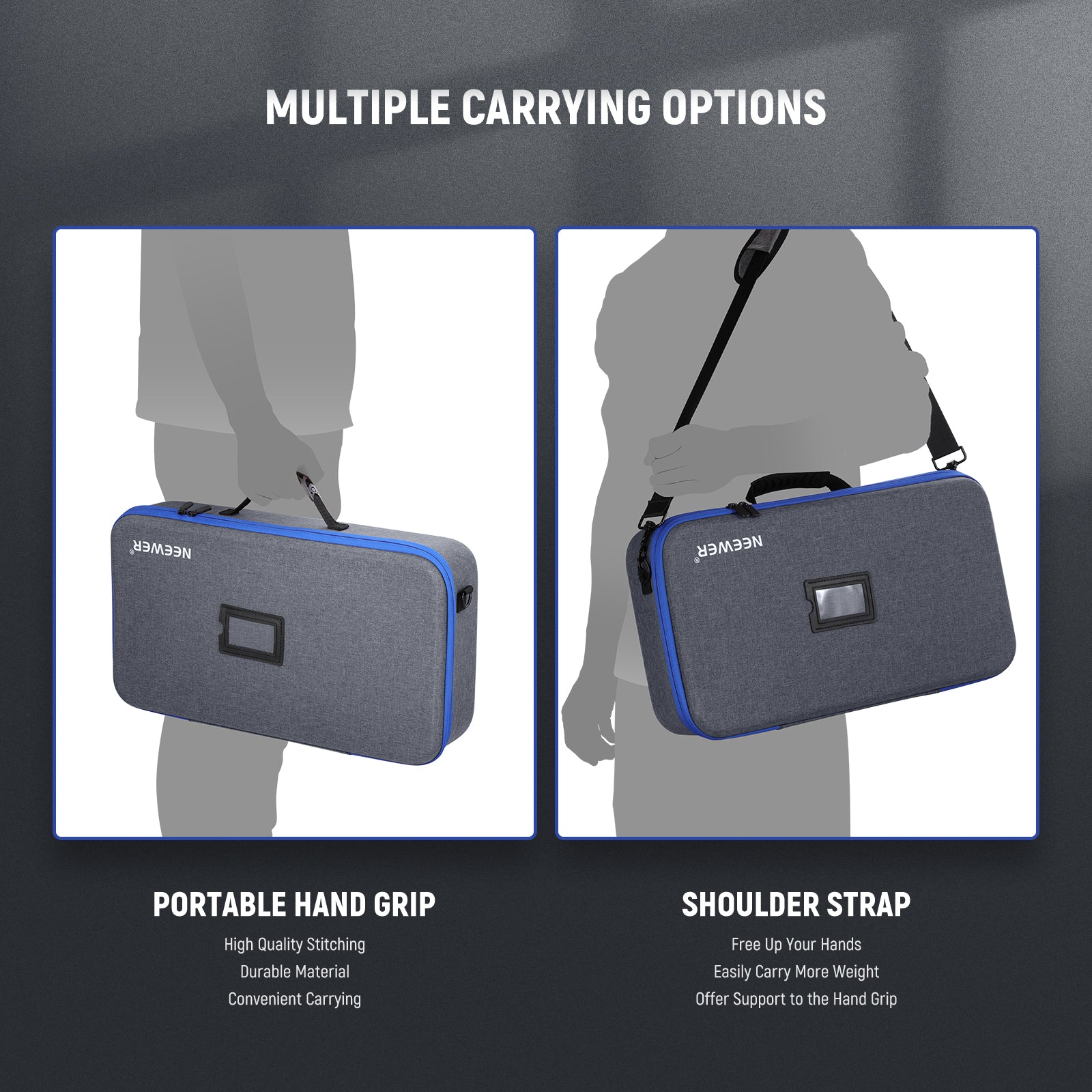 • Handheld & Shoulder Carry- Carry the bag in hand, or wear the bag on one shoulder or across the body. The handle with a nonslip plastic band enhances grip and makes transportation ultimately effortless and comfortable. The adjustable shoulder strap with pad offers extra cushion and spares you from strains, and also removable as needed. The durable and sturdy metal clip secures the strap and enables quick setup