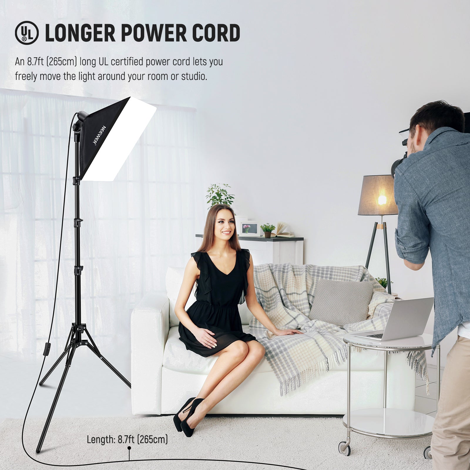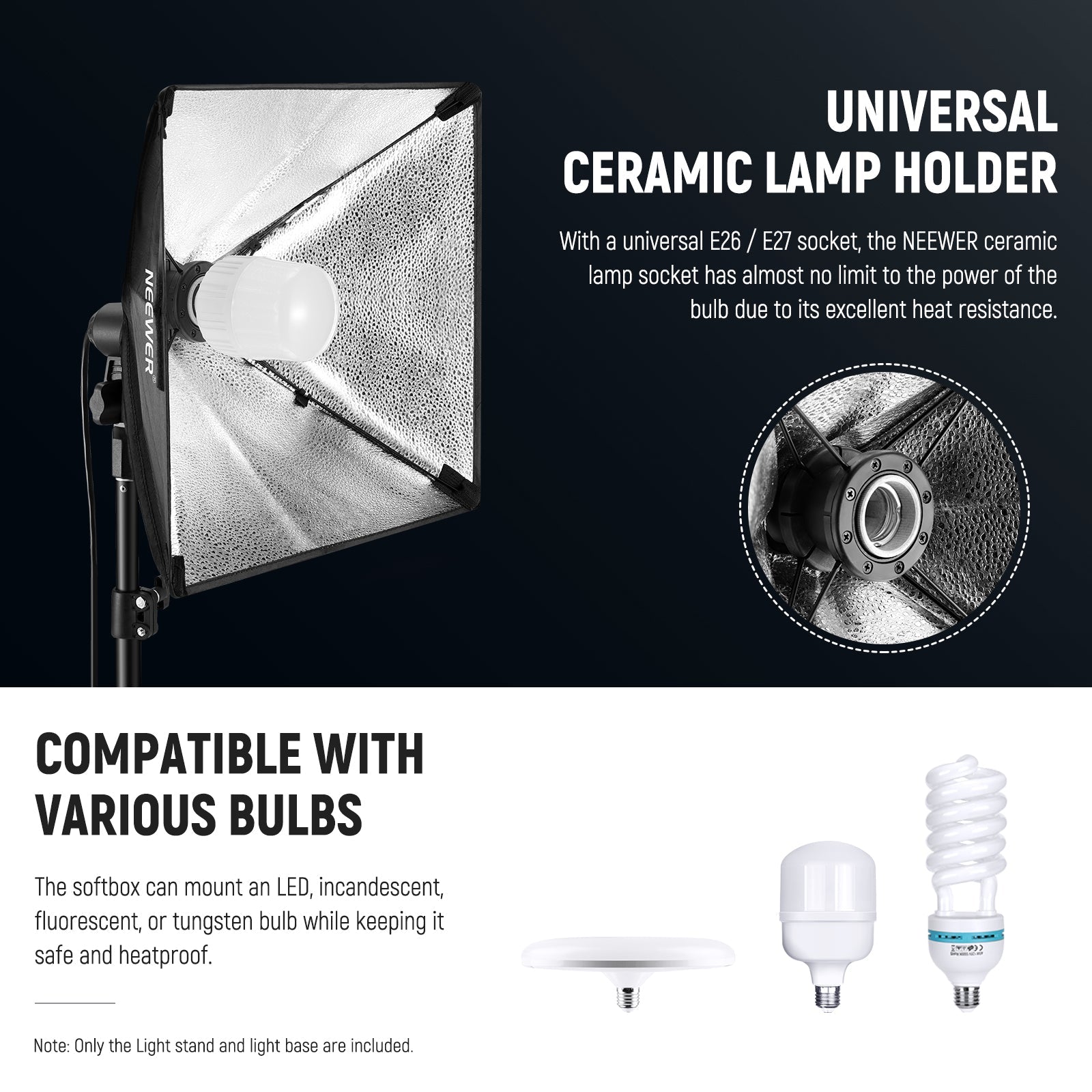 - Inbuilt Bulb Socket & Cable- With a universal E26 porcelain bulb socket base, the softbox can mount an LED, incandescent, fluorescent, or tungsten bulb while keeping it safe and heatproof. The 8.7ft (265cm) long cable makes light placement more flexible