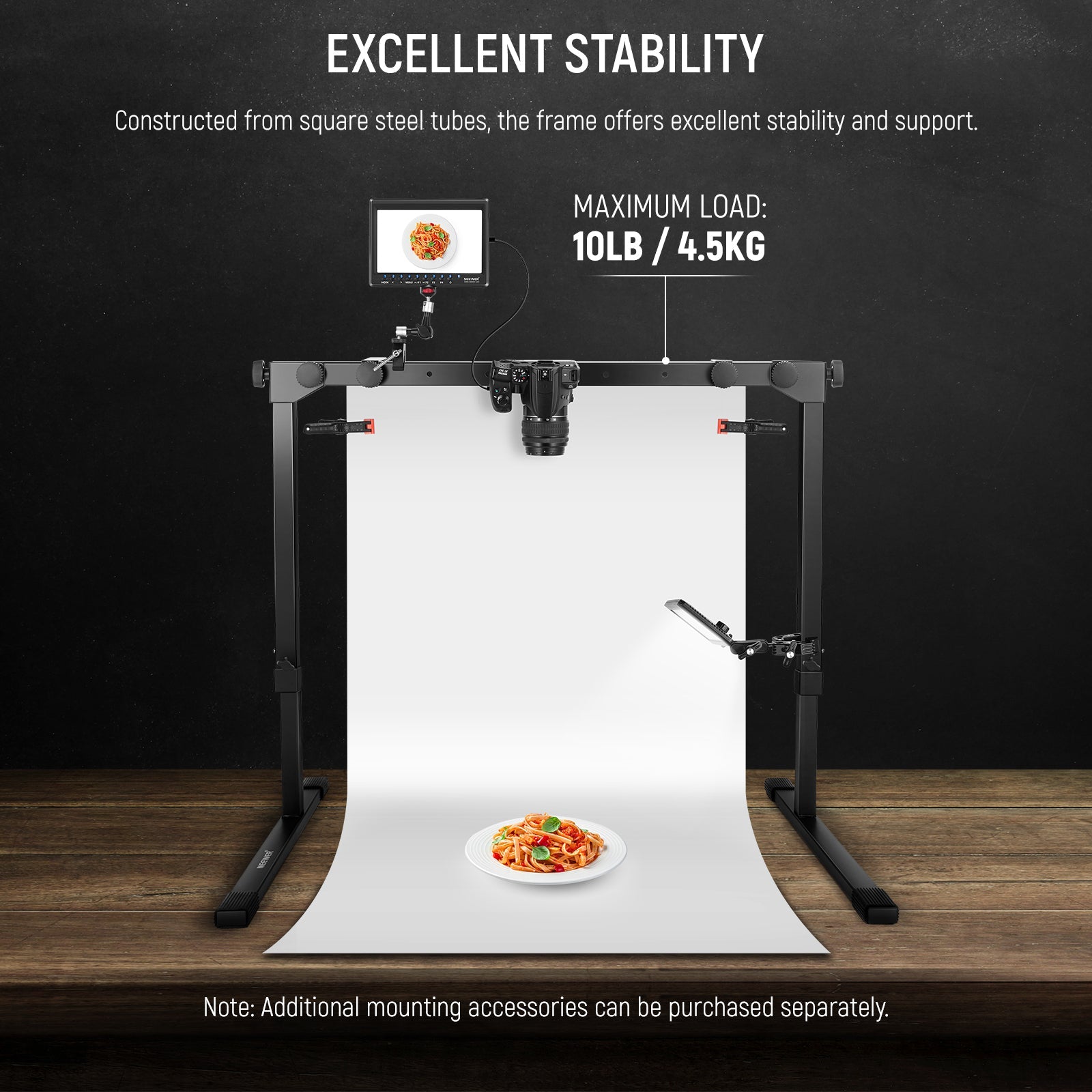• Secure Backdrop Attachment- L shaped brackets and durable backdrop clamps secure seamless paper, chromakey green screens, and backdrops for a clean and uniform background, versatile as a tabletop desk backdrop stand
