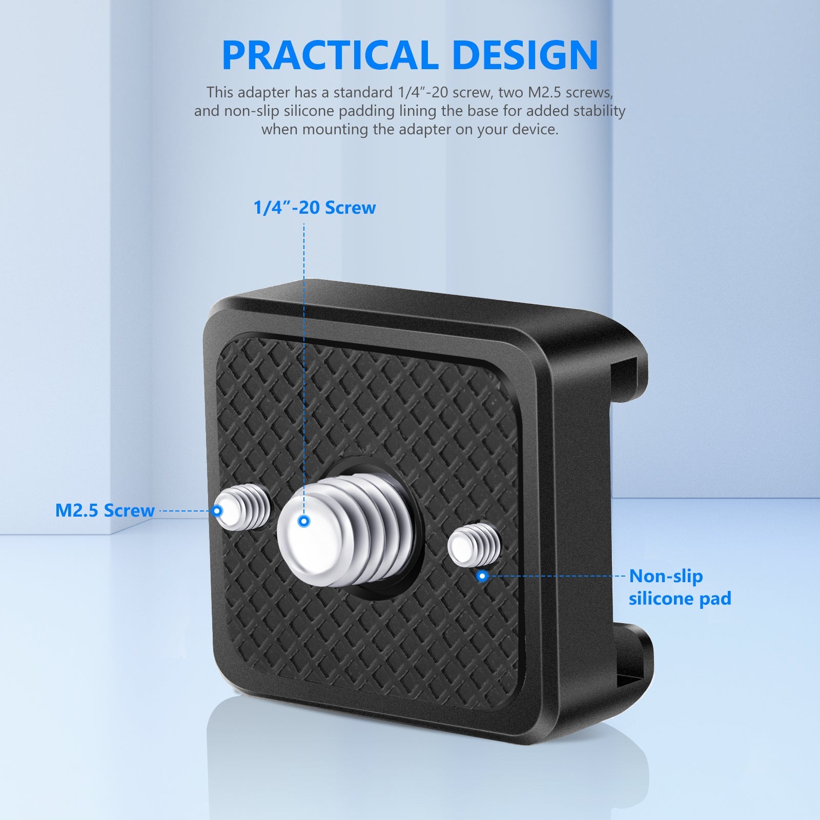 - Camera Cold Shoe Mounts feature one 1/4"-20 screw hole, two M2.5 screw holes, and bottom non-slip rubber padding for secure mounting on your compatible device.