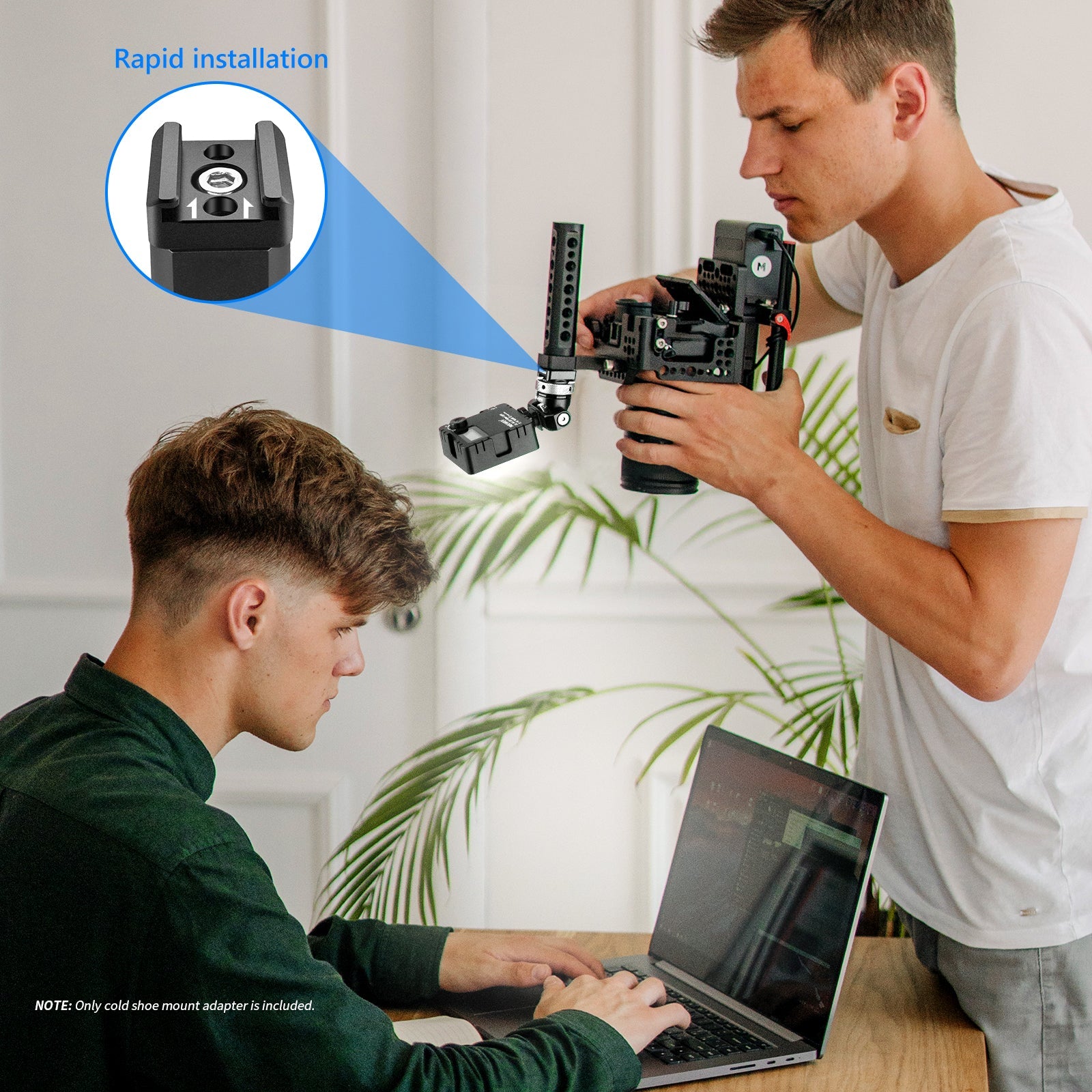 - The cold shoe mount allows you to attach more lights, microphones, or other accessories to adapt to any shooting scenario.