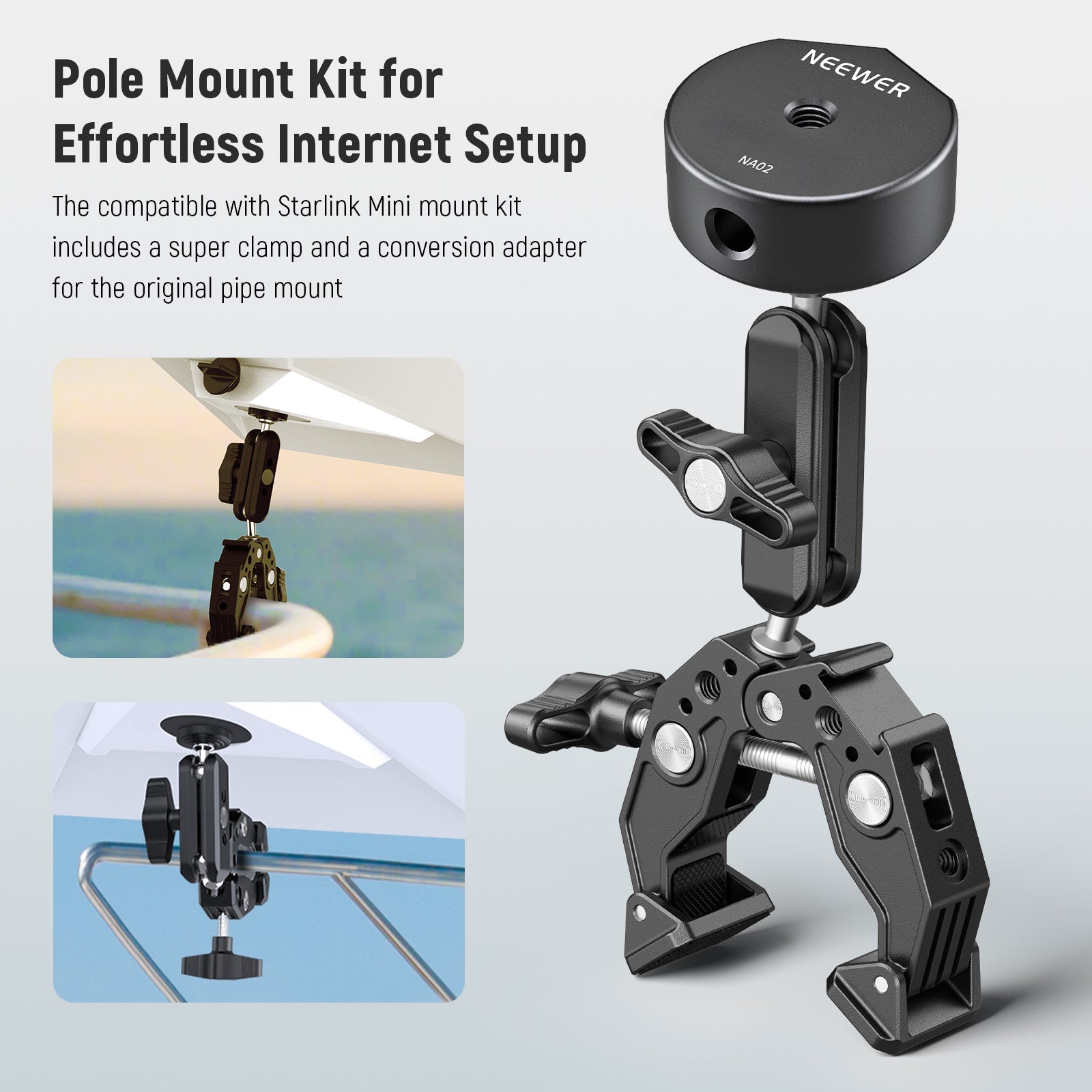 NEEWER ST83+NA02 Clamp Mount & Adapter Kit For Starlink Mini