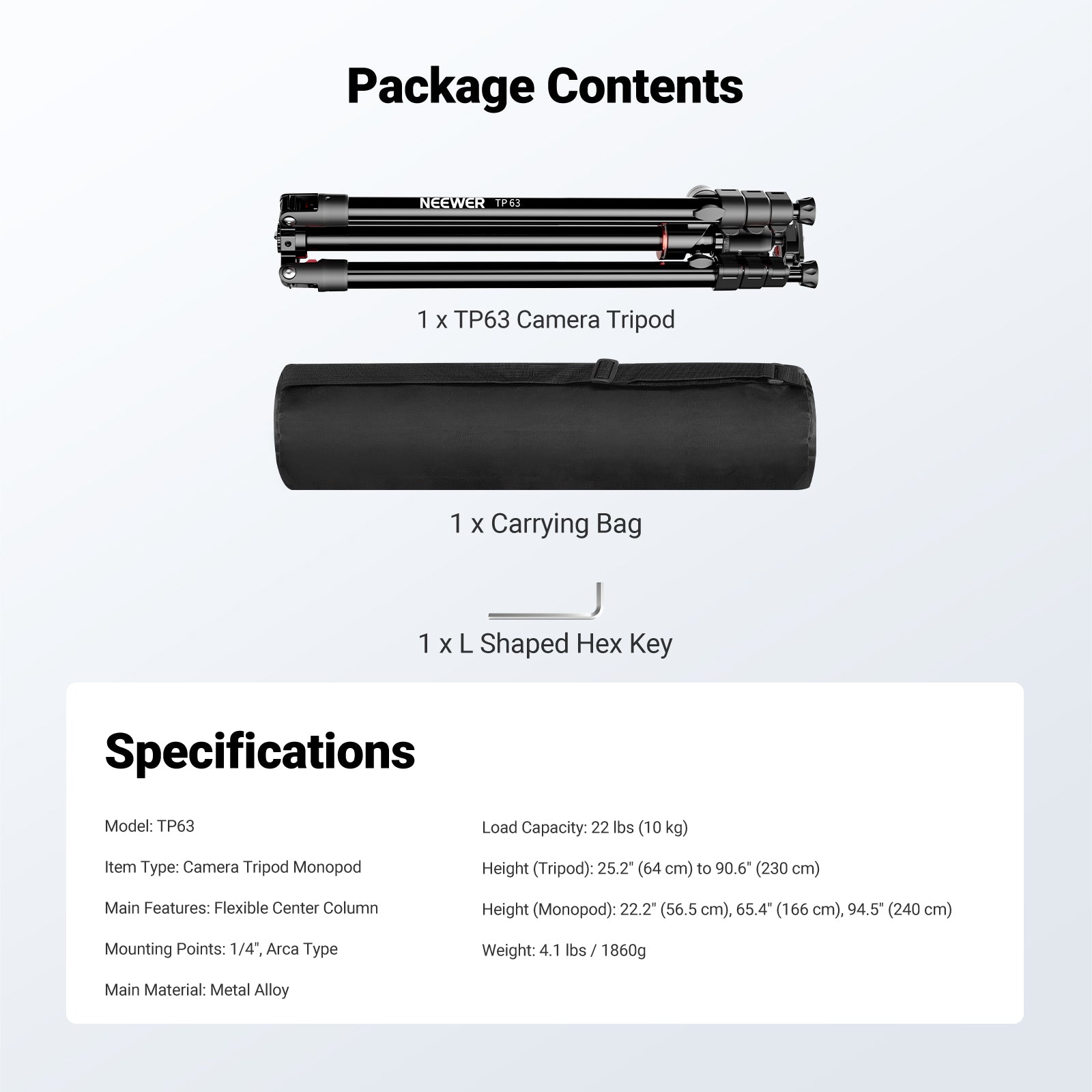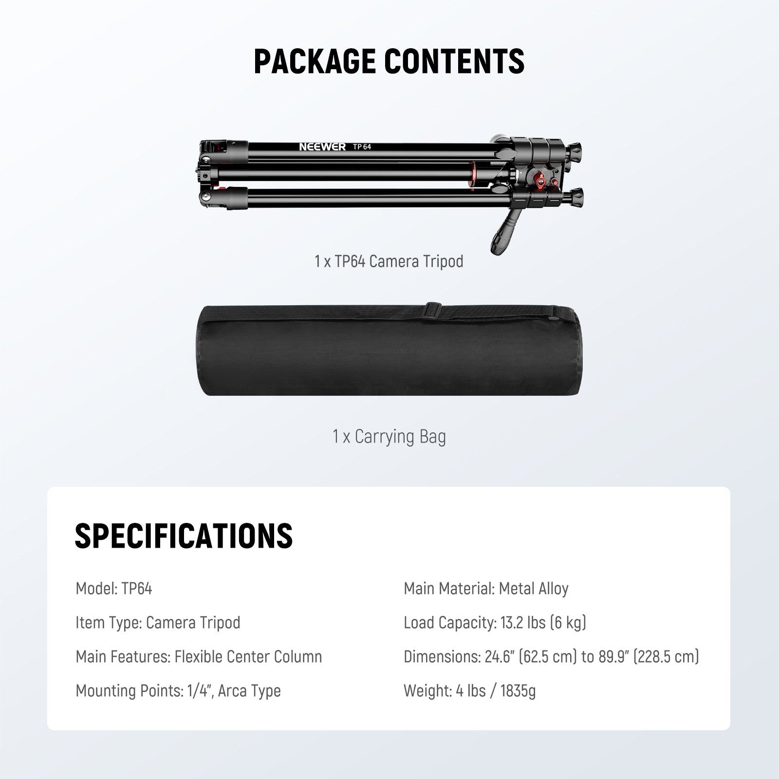 NEEWER TP63/TP64 Overhead Horizontal Camera Tripod Monopod