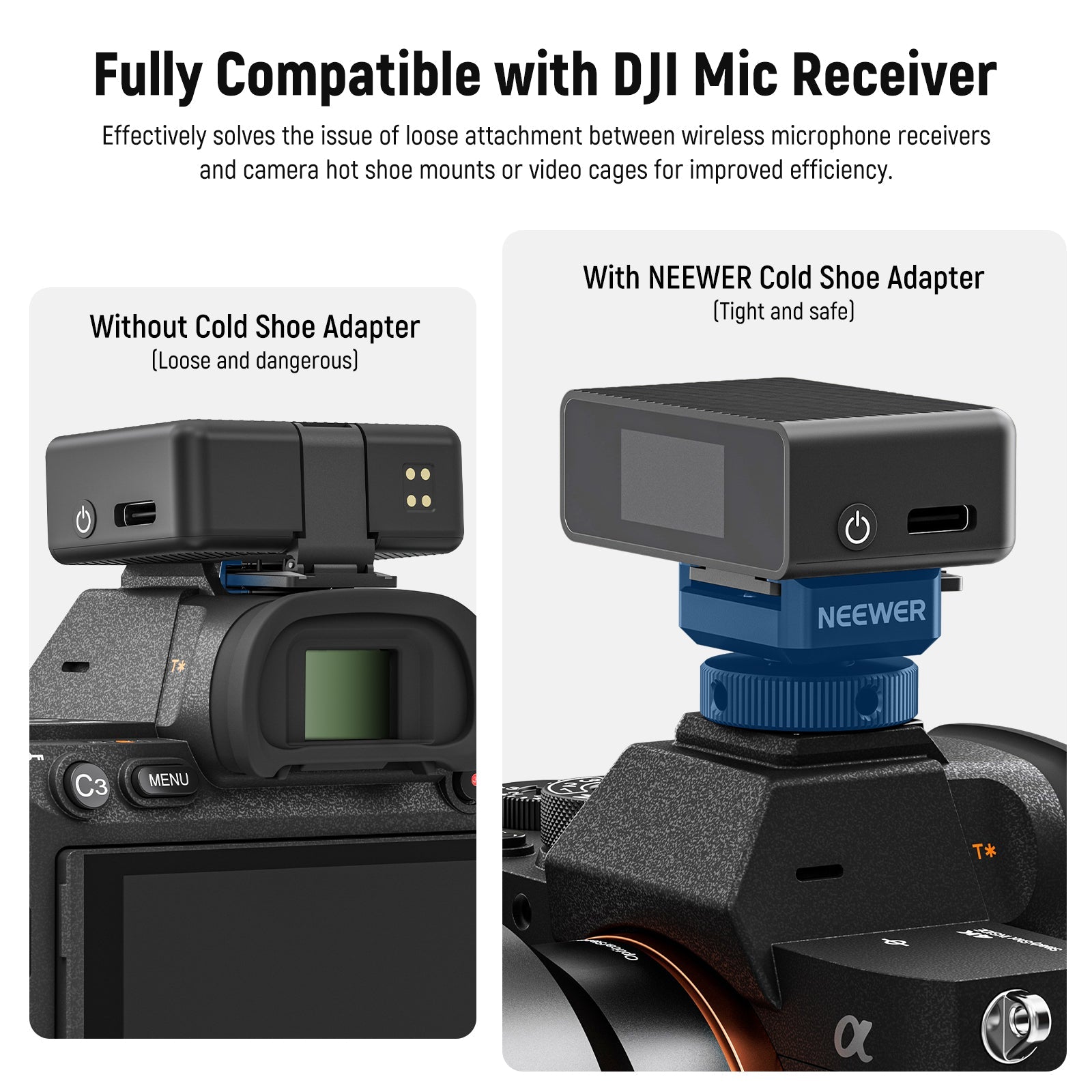 • Wider Compatibility- Fully compatible with DJI wireless lavalier microphone receiver, and compatible with SYNCO Saramonic Comica Rode NEEWER and other brand cold shoe microphone receivers. Also compatible with camera cage brackets and accessories with a cold shoe
