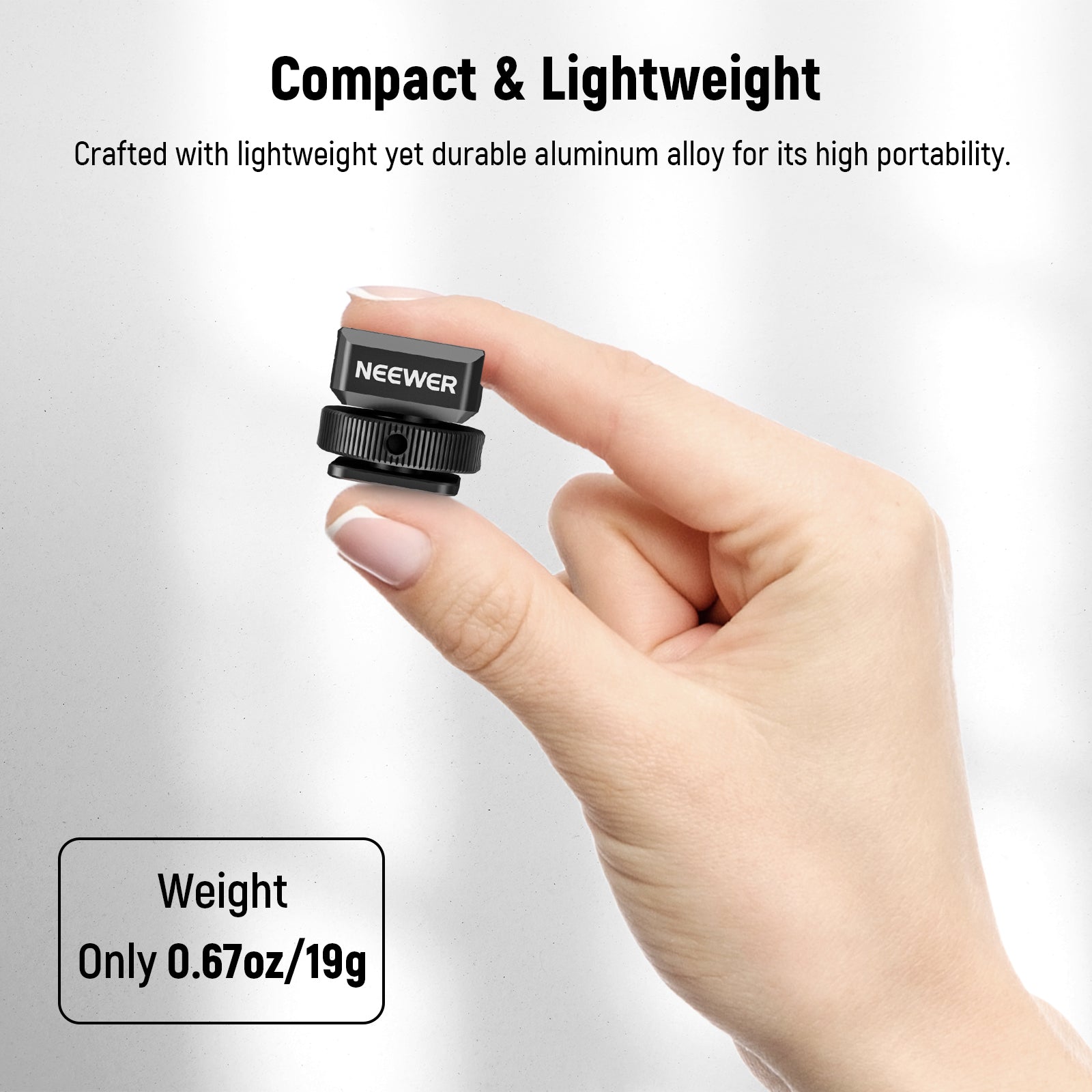 • Lightweight & Sturdy- Engineered with black anodized aluminum alloy, this adapter is scratch-resistant and rust proof. Measuring 9.8"x9.4"x8.3"/25x24x21mm and weighing merely 0.67oz/19g, it is compact and portable enough for filming on the go