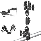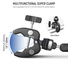 - Versatile Umbrella & Backdrop Clamps- Securely grip objects of up to 0.6"-1.6"/16-40mm in diameter, the two super clamps mounts are ideal for flat surfaces like desks, chairs, even clip on a pole like selfie sticks, tripods, light/mic stands, crossbars, bike handle bars, bicycle handlebars, umbrellas, compatible with DJI Ronin-M Ronin MX compatible with Freefly Movi 25mm and 30mm gimbal stabilizer rods