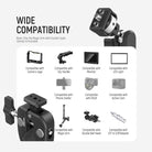 - Various Mounting Options- 1/4" threads, locating holes for ARRI, 2 cold shoe mounts on the super clamps are for action cameras, phones, webcams, monitors, LED fill lights, microphones and more photography & videography accessories, compatible with iPhone 16 15 Pro Max Plus 14 13 compatible with Samsung Galaxy compatible with GoPro Max 360 Hero 13 go pro 12 11 10 9 8 Black compatible with insta360 X4 x3 ace pro compatible with DJI compatible with mevo start. Phone holder and adapter not included