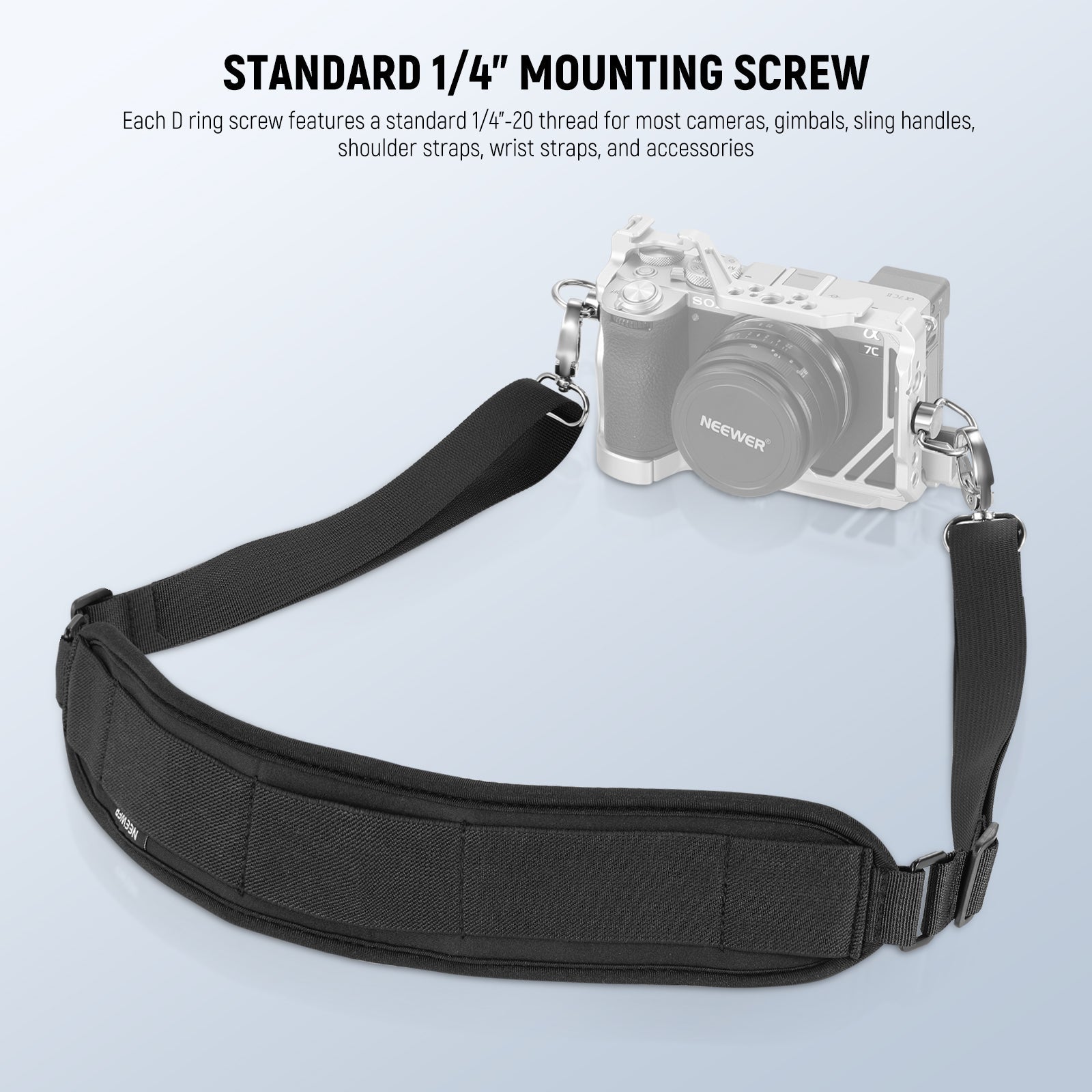 - Standard 1/4" Mounting Screw- Each D ring screw features a standard 1/4"-20 thread for most cameras, gimbals, sling handles, shoulder straps, wrist straps, and accessories