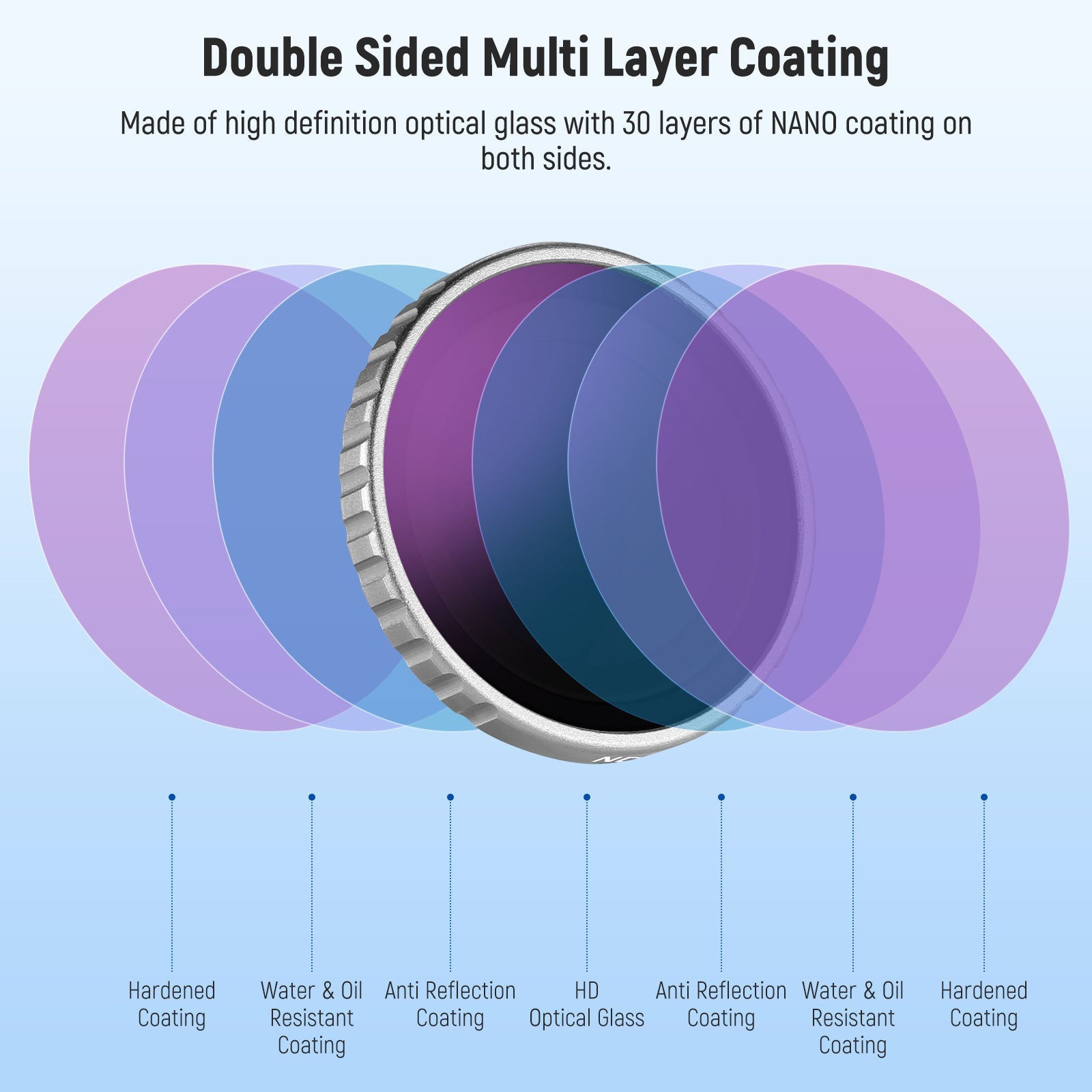 - High Quality Optical Glass and Nano Coating- Made of high definition optical glass with 30 layers of NANO coating on both sides, these filters provide superior protection against dust, oil, fingerprints, and scratches while reducing reflections from the filters themselves and the ground