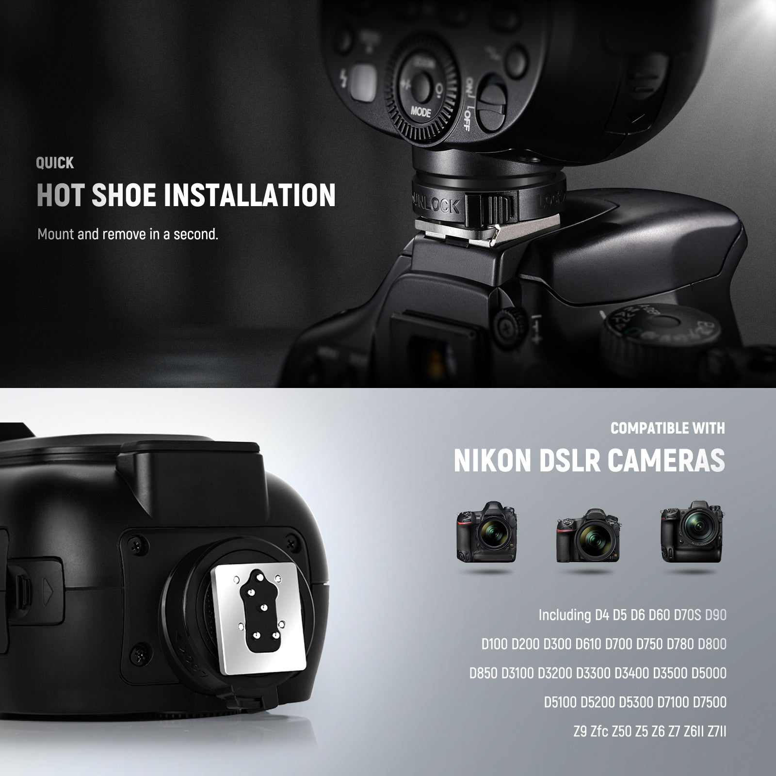 - Magnetic Dome Diffuser & Wide Compatibility- The dome diffuser softens and spreads light evenly, reducing harsh flashes and shadows. The flash also works with GM-M1, CR-M2, AK-R1 kits, S2 type and CRB1 mounts. Compatible with Nikon Z9 Z8 Zfc Z50 Z5 Z6 Z7 Z6II Z7II D4 D5 D6 D60 D70S D90 D100 D200 D300 D610 D700 D750 D780 D800 D850 D3100 D3200 D3300 D3400 D3500 D5000 D5100 D5200 D5300 D7100 D7500(NOT compatible with D810.Note: Firmware can be upgraded if incompatibility issue occurs.